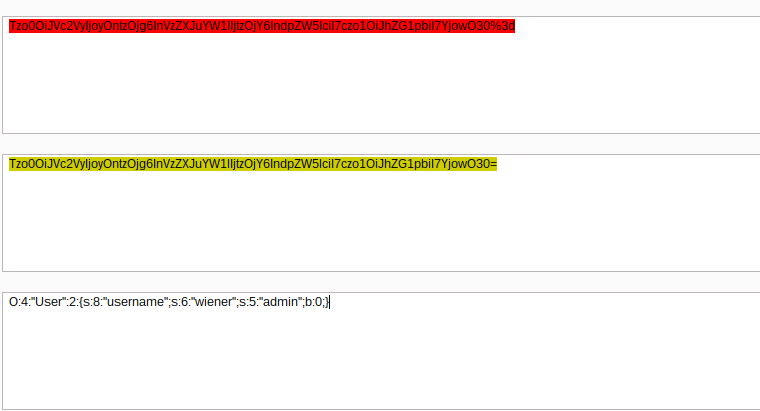 This lab uses a serialization-based session mechanism and is vulnerable to privilege escalation as a result. To solve the lab, edit the serialized object in the session cookie to exploit this vulnerability and gain administrative privileges. Then, delete the user Carlos.