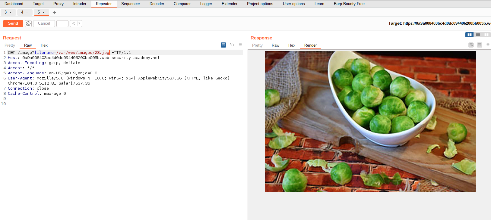 This lab contains a file path traversal in the display of product images. To solve the lab retrieve the contents of the /etc/passwd file.