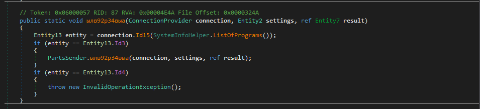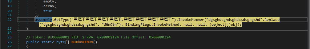 open('stage2.exe', 'wb').write(decoded)Our dumped files are valid binaries, but do not contain all features because the malware is using Reflection method to load additional assembly code. Reflection is a method used to load other assemblies at runtime of the program. This enables the malware to add extra features and validation of the program.