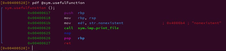 From the author’s challenge hint, we need to disassemble usefulFunction to understand how it works.