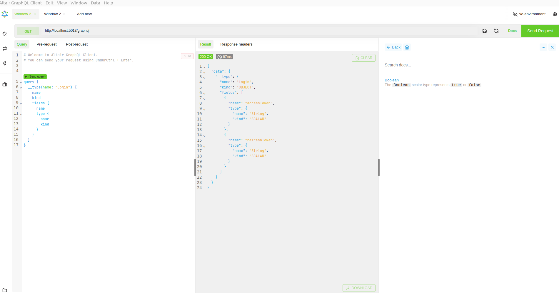 To get the more information about a single type, use the __type meta-field. For example to query Login. To get results of a specific query we run queries as shown in the query below.