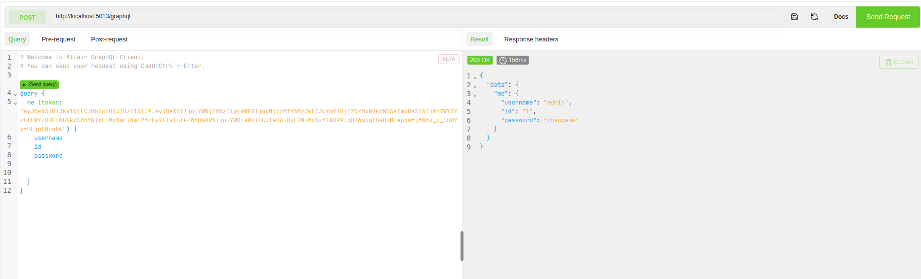 From the above leaked credentials in the setup.py file we can use operator and password123 for login in order to get tokens by running the query below.