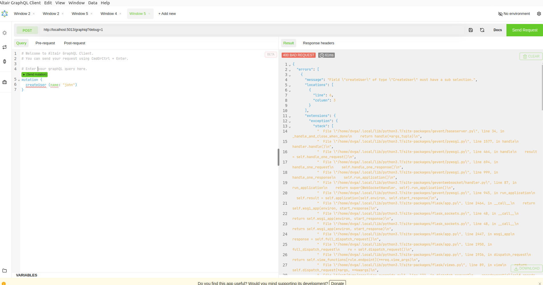 From response above, stack error message includes API server username is dvga, programming language, versions, root directory etc. Leaked information, may lead for us looking for vulnerabilities with the associated software.