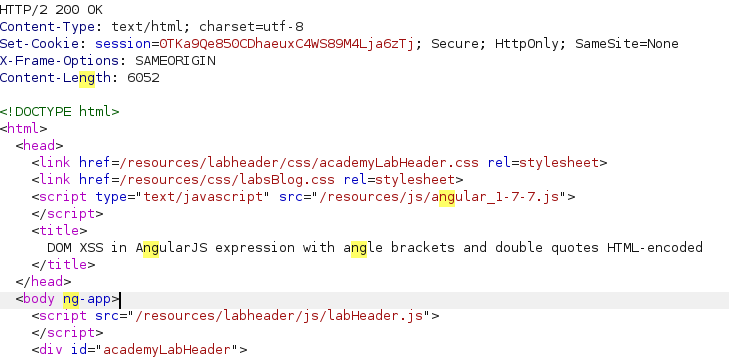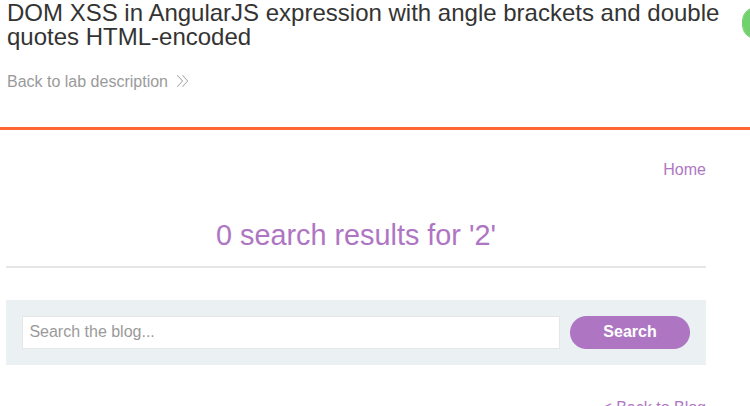 This lab contains a DOM-based cross-site scripting vulnerability in an AngularJS expression within the search functionality. AngularJS is a popular JavaScript library, which scans the contents of HTML nodes containing the ng-app attribute (also known as an AngularJS directive). When a directive is added to the HTML code, you can execute JavaScript expressions within double curly braces. This technique is useful when angle brackets are being encoded. To solve this lab, perform a cross-site scripting attack that executes an AngularJS expression and calls the alert function