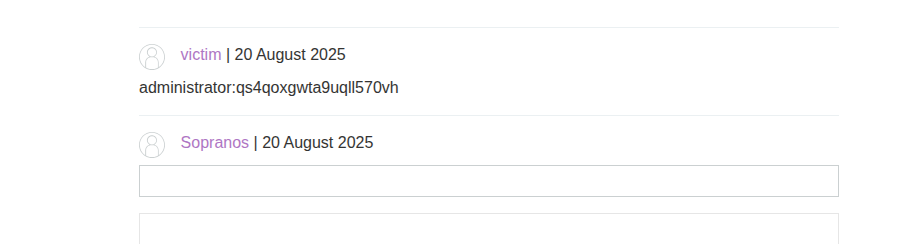 </script>By posting the above payload in our comment section, we are able to get the password for administrator as shown in the image below.